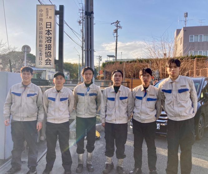 愛知県と岐阜県で半自動溶接作業の実習をしている8名の技能評価実技試験が実施されました。3年で取得した技能を十分発揮することが出来ました。合否結果はまだですが、結果は期待できると信じています!お疲れ様でした。