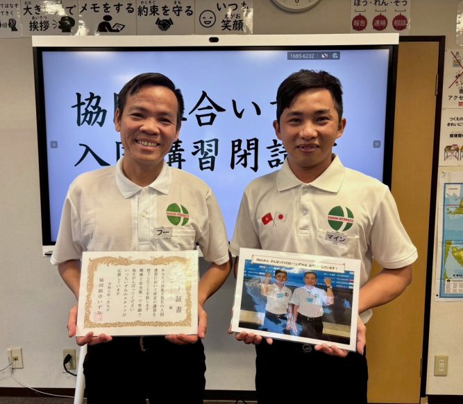 12月入国生の閉講式を実施しました。初めて訪れる異国の地、 日本での生活に最初は、皆戸惑いがありました。日本語学習以外にも、3年間日本で働きながら、集団生活する上で一人一人が規則を守りながら生活することの大切さをメンタル的なフォローも含め、しっかりと教えました。”ルールを守る” 実習先に配属してからも最も大切な事です。研修センターで学んだことを配属してからも忘れず、これからの実習を頑張ってほしいです。修了式では、3年間 日本にいる間の目標と3年後、母国へ帰国してからの夢をひとりひとり力強く発表してくれました。彼らの成長を期待しています。