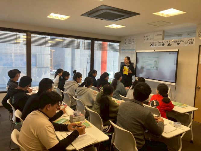 講習の一環で、講習科目に必須の「技能実習の法的保護に必要な情報の講習」を行政書士の講師により実施しました。母国語通訳もしながら、入管法と日本で働く上で大切な労働基準法をしっかりと学ぶことができました。